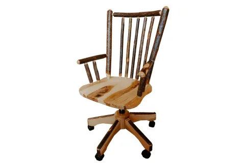 Our Hickory Double Pedestal desk is made with only solid wood. We ask our Amish craftsmen to select hickory wood that has the most knots, color variation and rustic character possible. We try to provide all one-of-a-kind executive log desks so that no two are ever the same!